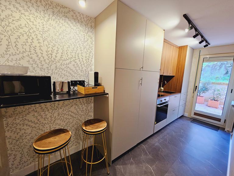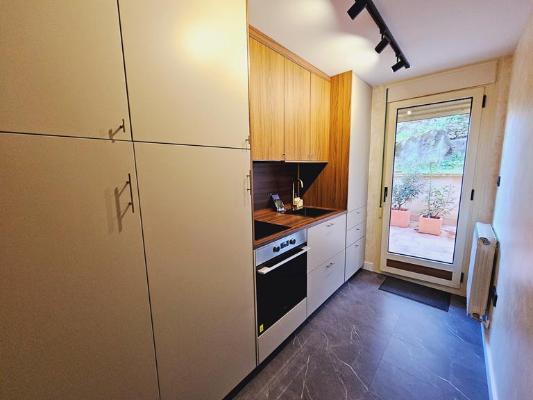 La cocina independiente está totalmente equipada, lista para que prepares tus mejores recetas por la cual se accede a una amplia terraza, perfecta para disfrutar de ella con familiares y amigos y con unas vistas maravillosas a la montaña. Además, dispone de dos dormitorios muy espaciosos que ofrecen comodidad y luminosidad, así como un baño completo con plato de ducha. La luz natural inunda cada rincón de este hogar, creando un ambiente acogedor y cálido.