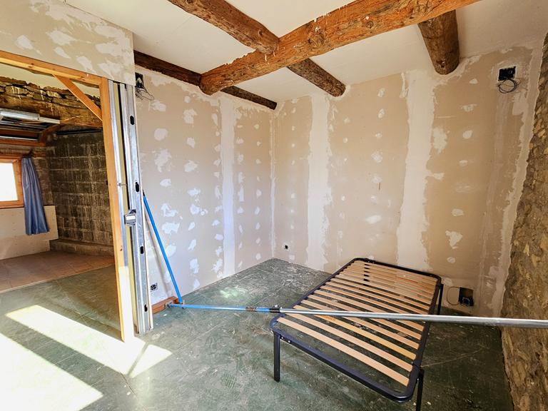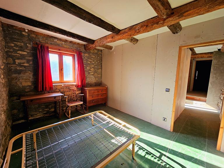 En la planta superior, encontrarás tres dormitorios, con la opción de reconfigurar el espacio para crear hasta cuatro habitaciones. Un baño en construcción te permitirá personalizarlo a tu gusto. La propiedad se vende junto a un extenso terreno ajardinado contiguo, ideal para disfrutar de la naturaleza y crear tu propio oasis privado.